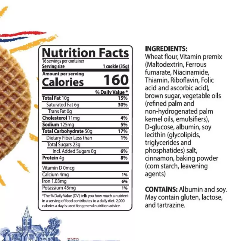 • Elaborado con dos finas y crujientes galletas tipo waffle rellenas de un delicioso caramelo, nuestro stroopwafels tradicional es el acompañante perfecto para tu café o te . Al colocar sobre tu taza caliente el relleno se suaviza y libera todo su aroma, creando una experiencia unica de sabor y textura